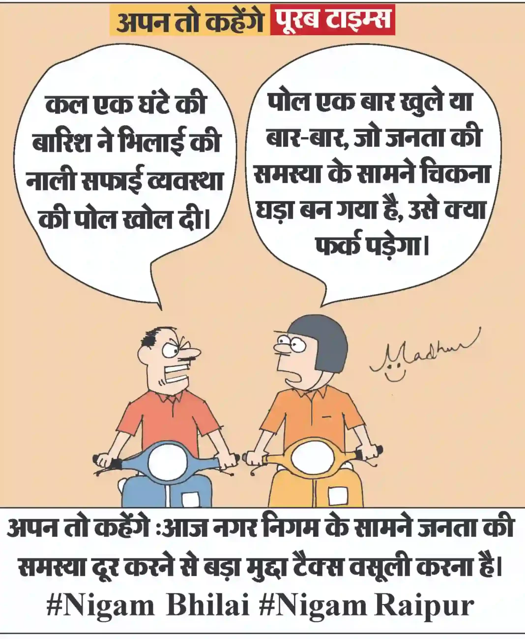 आज का कार्टून Less than 1 min.Read आज का कार्टून:आज नगर निगम के सामने जनता की समस्या दूर करने से बड़ा मुद्दा टैक्स वसूली करना है। #Nigam Bhilai #Nigam Raipur By Poorab Times September 11, 2025 Share FacebookTwitterPinterestWhatsApp More Topics आज का कार्टून आज का कार्टून : ईरान युद्ध का गहरा असर, भारत की शादियों पर भी पड़ा 😃 0 छत्तीसगढ़ प्रशिक्षु न्यायाधीश लोकतंत्र के तीसरे स्तंभ के रूप में निभाएंगे महत्वपूर्ण भूमिका : मुख्यमंत्री श्री साय 0 रायपुर। मुख्यमंत्री विष्णु देव साय से आज विधानसभा स्थित... देश बिहार भर्ती बोर्ड की गंभीर लापरवाही ,एडमिट कार्ड पर पर कुत्ते की फोटो 0 बिहार के रोहतास में भर्ती परीक्षा प्रणाली की गंभीर... छत्तीसगढ़ बिहान से बदली महिलाओं की जिंदगी, आर्थिक सशक्तिकरण की राह पर बढ़ रहीं ‘लखपति दीदी’ 0 महतारी वंदन योजना और बिहान से मिली नई पहचान रायपुर।... छत्तीसगढ़ साझी मेहनत, साझा समृद्धि — ‘बिहान’ से बदल रहा ग्रामीण महिला जीवन 0 धमतरी। राष्ट्रीय ग्रामीण आजीविका मिशन के अंतर्गत संचालित छत्तीसगढ़... छत्तीसगढ़ 10,000 चूजों की क्षमता वाले एयर कंडीशनर मुर्गी फार्म का संचालन कर रही है माँ लक्ष्मी महिला समूह 0 मुर्गी फार्म से लगभग 80 हजार से अधिक का... देश धामी सरकार ने हरिद्वार कुंभ मेला 2027 के लिए 1000 करोड़ किये आवंटित 0 आध्यात्मिक पर्यटन को बढ़ावा देने और राज्य के धार्मिक... छत्तीसगढ़ खेल प्रतियोगिताओं के साथ उत्साहपूर्वक मनाया गया अंतरराष्ट्रीय महिला दिवस, महिलाओं ने दिखाया दमखम 0 एमसीबी. अंतरराष्ट्रीय महिला दिवस के अवसर पर जिला प्रशासन... इसे भी पढ़े आज का कार्टून : ईरान युद्ध का गहरा असर, भारत की शादियों पर भी पड़ा 😃 आज का कार्टून March 12, 2026 आज का कार्टून : बीमारी का शेड्यूल : सर, मेरी तबीयत खराब होने का ‘टाइम टेबल’ बीसीसीआई ने जारी कर दिया है . #... आज का कार्टून March 11, 2026 आज का कार्टून : सड़क पर अंदोलन के लिये भारत में राजनीतिक पार्टियों को भी भाड़े पर कार्यकर्ता इकट्ठे करने पड़ते हैं, हमारा जेन... आज का कार्टून March 10, 2026 आज का कार्टून : जो परमाणु हथियार उपयोग की कोशिश भी करेगा, पूरा विश्व उसके विरुद्ध खड़ा हो जायेगा आज का कार्टून March 8, 2026 आज का कार्टून : आंध्र प्रदेश सरकार ने ‘डिजिटल ब्रेक’ लगा दिया है, अब 13 से कम उम्र वाले सोशल मीडिया से आउट होंगे आज का कार्टून March 7, 2026 आज का कार्टून : क्या कहते हैं युद्ध रोकने के लिये ठंडाई के नशे में डूबे, ब्रह्मांड के सबसे बड़ा एक्सपर्ट आज का कार्टून March 3, 2026 आज का कार्टून : पाकिस्तान क्रिकेट बोर्ड का नया मंत्र: “जीतो या घर की रजिस्ट्री लाओ” आज का कार्टून March 2, 2026 आज का कार्टून : पिचकारी से रंग व गोल गुब्बारा, लगाओ सीधा अंकल के पेट पर निशाना और बोलो ‘बुरा न मानो होली है’ आज का कार्टून March 1, 2026 आज का कार्टून : महाशक्तियों की म्यूजिकल चेयर रेस में क्या रूस-चीन की ई