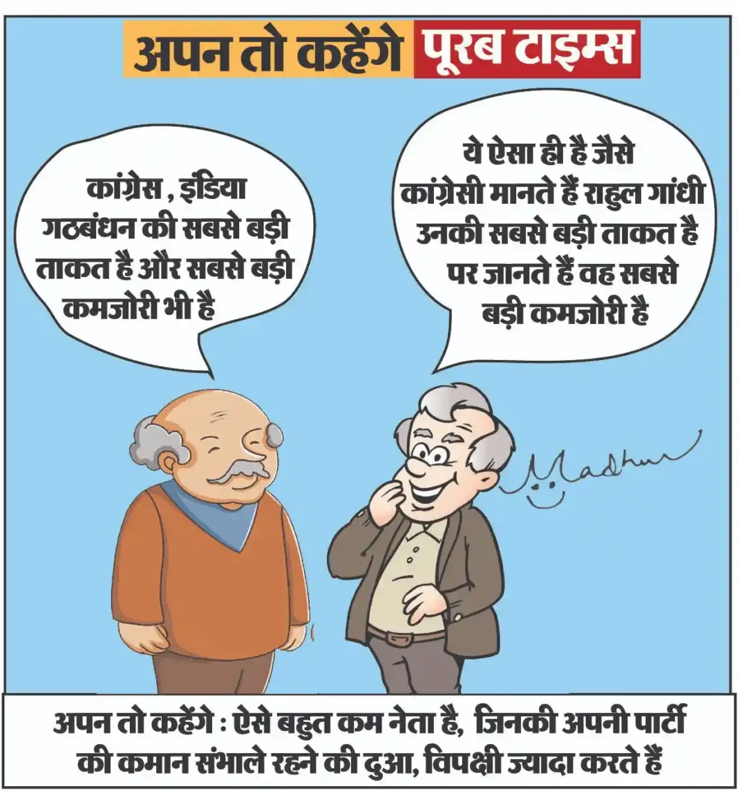 आज का कार्टून Less than 1 min.Read आज का कार्टून : ऐसे बहुत कम नेता है, जिनकी अपनी पार्टी की कमान संभाले रहने की दुआ, विपक्षी ज्यादा करते हैं By Poorab Times December 27, 2025 Share FacebookTwitterPinterestWhatsApp More Topics व्यंग्य : गुस्ताखी माफ़ इस खेल में सत्ता पक्ष कितनी भी ‘गलतियों’ पर उतर आए , विपक्ष फिर भी ‘सेल्फ गोल’ खायेगा ? 0 आजकल बीजेपी TINA फैक्टर यानी देयर इस नो आल्टरनेटिव... आज का कार्टून आज का कार्टून : जिनके खुद के घर शीशे के रहते हैं , उन्हें दूसरों को जबरन उंगली नहीं करना चाहिये 0 छत्तीसगढ़ जनजातीय परंपराओं और संस्कृति पर आधारित भव्य प्रदर्शनी का राष्ट्रपति द्रौपदी मुर्मु ने किया अवलोकन 0 बस्तर पंडुम के शुभारंभ समारोह में शामिल होने पहुंचीं... छत्तीसगढ़ रेरा प्रावधानों के प्रभावी क्रियान्वयन की दिशा में छत्तीसगढ़ रेरा का महत्वपूर्ण कदम, 14 बैंकों को फाइनल एम्पैनलमेंट किया गया 0 छत्तीसगढ़ रियल एस्टेट विनियामक प्राधिकरण ने राज्य में रियल... पर्यटन और संस्कृति अरावली हिल्स की ये 3 जगहें है इतिहास और रोमांच से भरपूर 0 कुछ समय पहले अरावली हिल्स पर चल रहे विवादों... महिला जगत यदि सफेद की जगह पीला डैंड्रफ दिखे तो हो सकता है ये गंभीर रोग, जरूर कराएं ये टेस्ट 0 अगर आप भी सिर में लगातार होने वाली खुजली... वनस्पति जड़ी बूटी देसी नुस्खे हल्दी का पाउडर ही नहीं, इसके पत्ते भी हैं सेहत का खजाना, जानें कैसे 0 हम सभी हल्दी की पाउडर या गांठ से अच्छी... छत्तीसगढ़ राष्ट्रपति द्रौपदी मुर्मू का जगदलपुर के मां दंतेश्वरी एयरपोर्ट में आत्मीय स्वागत 0 देश की राष्ट्रपति द्रौपदी मुर्मू का आज बस्तर संभाग... इसे भी पढ़े आज का कार्टून : जिनके खुद के घर शीशे के रहते हैं , उन्हें दूसरों को जबरन उंगली नहीं करना चाहिये आज का कार्टून February 7, 2026 आज का कार्टून : राज्य सभा का टिकट पक्का होने से पहले, घोटाले की फाइल पर ‘सफेद सफेदी’ का पक्का इंतजाम तो होगा ही... आज का कार्टून February 5, 2026 आज का कार्टून : संसद में दिखी नई फिल्म , “आँख मिचौली सियासत की” , एक तरफ बेतुका दर्द , दूसरी तरफ अनावश्यक तंज आज का कार्टून February 5, 2026 आज का कार्टून : दूसरे का घर जलाने चले थे, खुद की लुंगी में आग लग रही है. बांग्लादेश को भड़काना अलग बात है... आज का कार्टून February 4, 2026 आज का कार्टून : पर्यावरण विभाग का सबसे बड़ा योगदान, हर साल प्रदूषण बढ़ने पर ‘चिंता’ व्यक्त करने का रिकॉर्ड बनाना है आज का कार्टून February 2, 2026 आज का कार्टून : बजट उतना ही समझ आया है , जितना मोंटेसरी के बच्चे को रॉकेट साइंस . आंकड़ों के जाल में कैल्कुलेटर... आज का कार्टून February 1, 2026 आज का कार्टून : सोना क्या सस्ता हुआ, शादी लायक लड़कियों के पिता व मोहल्ले के कुंवारे लड़कों के चेहरे पर ‘गोल्डन ग्लो’ लौट... आज का कार्टून January 31, 2026 आज का कार्टून : अब पूरे देश की आशावादी नज़र इस बार के बजट पर…. आ
