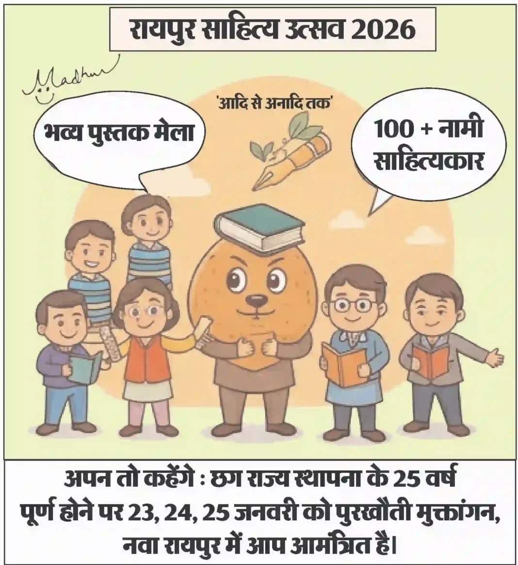 आज का कार्टून : छग राज्य स्थापना के 25 वर्ष पूर्ण होने पर 23,24,25 जनवरी को पुरखौती मुक्तांगन, नवा रायपुर में आप आमंत्रित है।