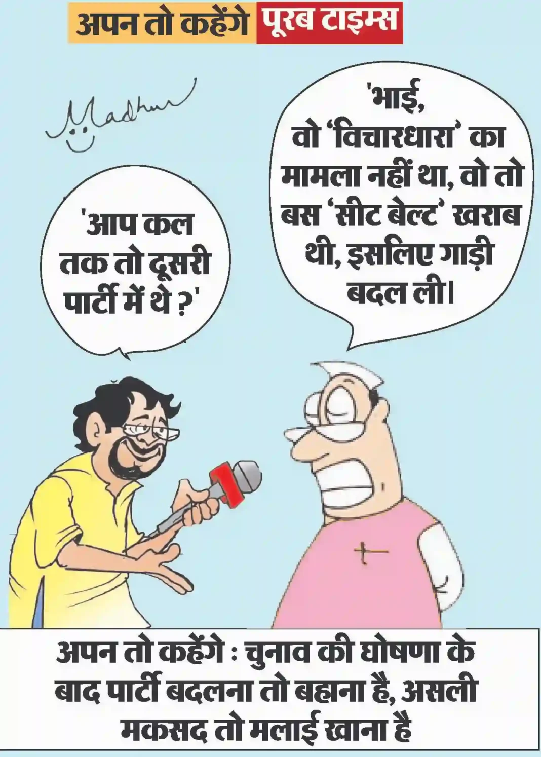 आज का कार्टून : चुनाव की घोषणा के बाद पार्टी बदलना तो बहाना है, असली मकसद तो मलाई खाना है