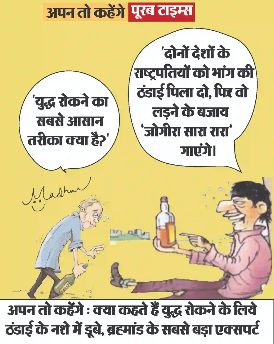 आज का कार्टून : क्या कहते हैं युद्ध रोकने के लिये ठंडाई के नशे में डूबे, ब्रह्मांड के सबसे बड़ा एक्सपर्ट