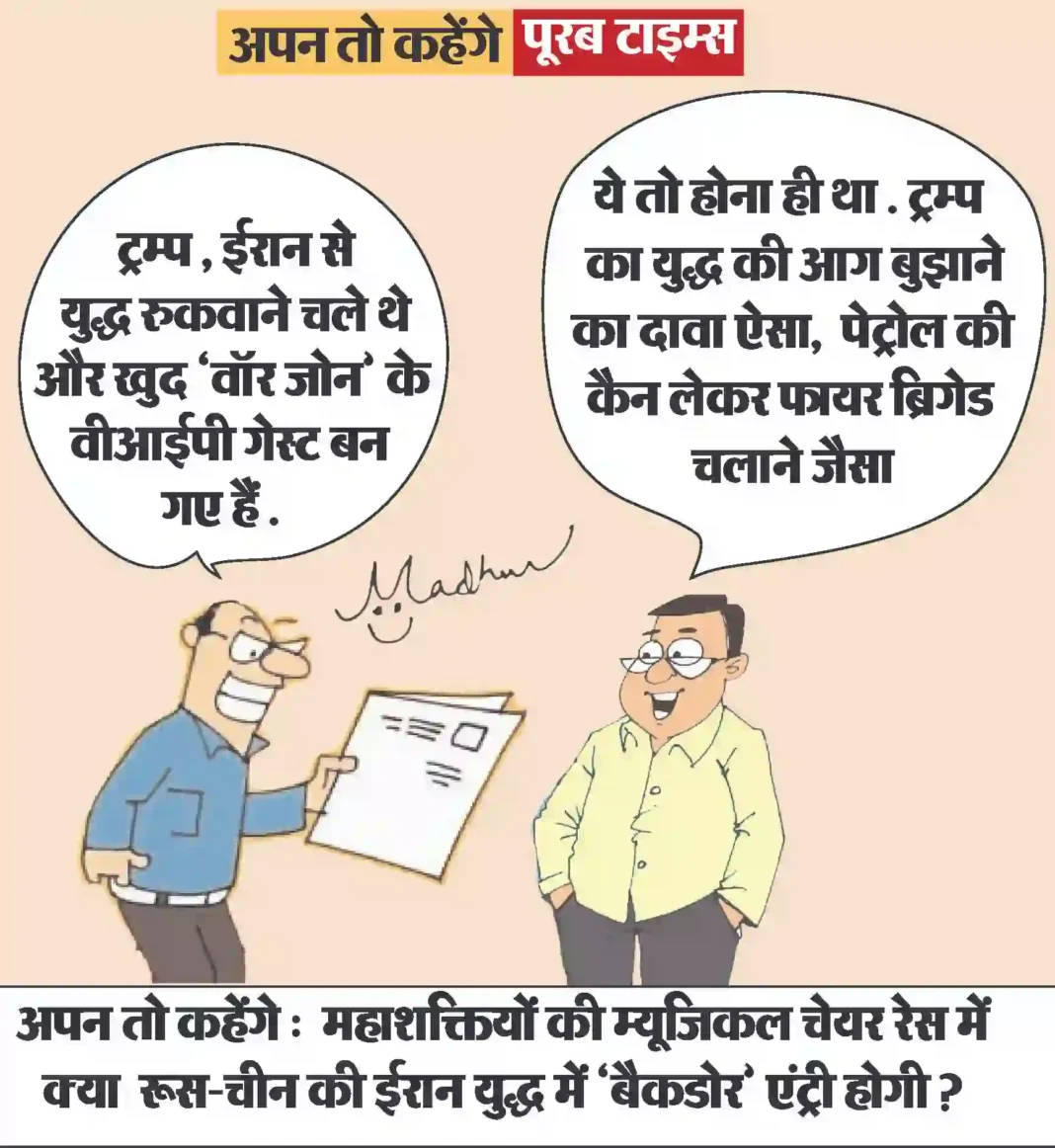 आज का कार्टून : महाशक्तियों की म्यूजिकल चेयर रेस में क्या रूस-चीन की ईरान युद्ध में ‘बैकडोर’ एंट्री होगी ?
