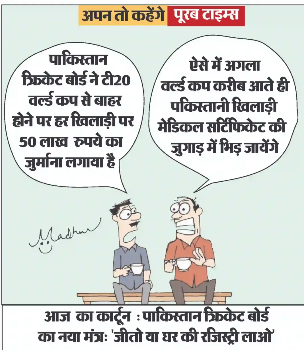 आज का कार्टून : पाकिस्तान क्रिकेट बोर्ड का नया मंत्र: “जीतो या घर की रजिस्ट्री लाओ”