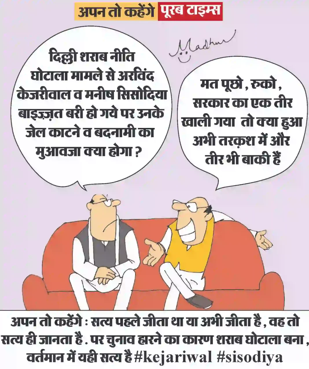 आज का कार्टून Less than 1 min.Read आज का कार्टून : सत्य पहले जीता था या अभी जीता है , वह तो सत्य ही जानता है . पर चुनाव हारने का कारण शराब घोटाला बना , वर्तमान में यही सत्य है #kejariwal #sisodiya By Poorab Times February 27, 2026 Share FacebookTwitterPinterestWhatsApp More Topics दुनिया Kim Jong Un की चेतावनी: सुरक्षा को खतरा हुआ तो दक्षिण कोरिया को “पूरी तरह मिटा” देंगे 0 उत्तर कोरिया के सर्वोच्च नेता Kim Jong Un ने... दुनिया East India Company का आधुनिक रूप बंद, लंदन में लक्जरी रिटेल कारोबार दिवालिया 0 कभी एशिया और विशेषकर भारत की तकदीर तय करने... छत्तीसगढ़ उत्तर बस्तर कांकेर : कृषक उन्नति योजना के तहत 92,493 किसानों के खाते में आएंगे 372 करोड़ 67 लाख रुपए 0 मुख्यमंत्री विष्णुदेव साय 28 फरवरी को करेंगे राशि का... छत्तीसगढ़ रायपुर : किसानों की समृद्धि और खुशहाली से ही विकसित भारत का सपना होगा साकार – मुख्यमंत्री विष्णु देव साय 0 होली से पहले किसानों को मिलेगी 10 हजार करोड़... छत्तीसगढ़ रायपुर में पी.जी. डिप्लोमा इन फैमिली मेडिसिन का दीक्षांत समारोह संपन्न 0 व्यावहारिक कौशल से समाज के अंतिम व्यक्ति तक बेहतर... आज का कार्टून आज का कार्टून : एआई और ड्रोन की एंट्री से अब छत्तीसगढ़ का किसान खेत में केवल पसीना ही नहीं, बल्कि ‘सॉफ्टवेयर’ भी चलाएगा... 0 देश पश्चिम बंगाल की मुख्यमंत्री ममता बनर्जी ने SIR प्रक्रिया पर उठाए सवाल 0 ममता बनर्जी ने मतदाता सूची के विशेष गहन पुनरीक्षण... देश प्रधानमंत्री नरेन्द्र मोदी इंस्टाग्राम पर 10 करोड़ फॉलोअर पार करने वाले विश्व के पहले राजनेता बने 0 प्रधानमंत्री नरेन्द्र मोदी ने सोशल मीडिया की दुनिया में... इसे भी पढ़े आज का कार्टून : एआई और ड्रोन की एंट्री से अब छत्तीसगढ़ का किसान खेत में केवल पसीना ही नहीं, बल्कि ‘सॉफ्टवेयर’ भी चलाएगा... आज का कार्टून February 26, 2026 आज का कार्टून : आप इन आत्मनिर्भर ब्रेक्स के लिए कोई मजबूत शू ब्रांड तलाश रही हैं? 😊 आज का कार्टून February 25, 2026 आज का कार्टून : सियासत का बुलडोजर बनाम शास्त्र की आस्था – किसमें कितना हैं दम ? आज का कार्टून February 24, 2026 आज का कार्टून : सीधा कह दो कि ये हमारे खिलाफ ‘विपक्ष’ की गहरी साजिश है और जांच की मांग करो। आज का कार्टून February 23, 2026 आज का कार्टून : एआई से डरो नहीं , ऐसे ही बहुत से सवालों के जवाब उसके पास भी नहीं हैं . आज का कार्टून February 21, 2026 आज का कार्टून : क्या किसी ने चुनाव आयोग के ‘आचार संहिता’ का डंडा, पक्ष या विपक्ष के किसी बड़े नेता पर चलते देखा... आज का कार्टून February 20, 2026 आज का कार्टून : ओलंपिक में शामिल होगा नया खेल: ‘पार्टी-जंपिंग’, भारतीय नेताओं के गोल्ड मेडल पक्के आज का कार्टून February 20, 2026 आज का कार्टून : ‘त्याग’ सिर्फ चुनाव घोषणापत्रों में होता है, बैंक अकाउंट में तो सिर्फ ‘क्रेडिट’ का मैसेज ही सुहाता है। आज का कार्टून February 18, 2026 आज का कार्टून : ट्रम्प व खोमनेई, एक दूस
