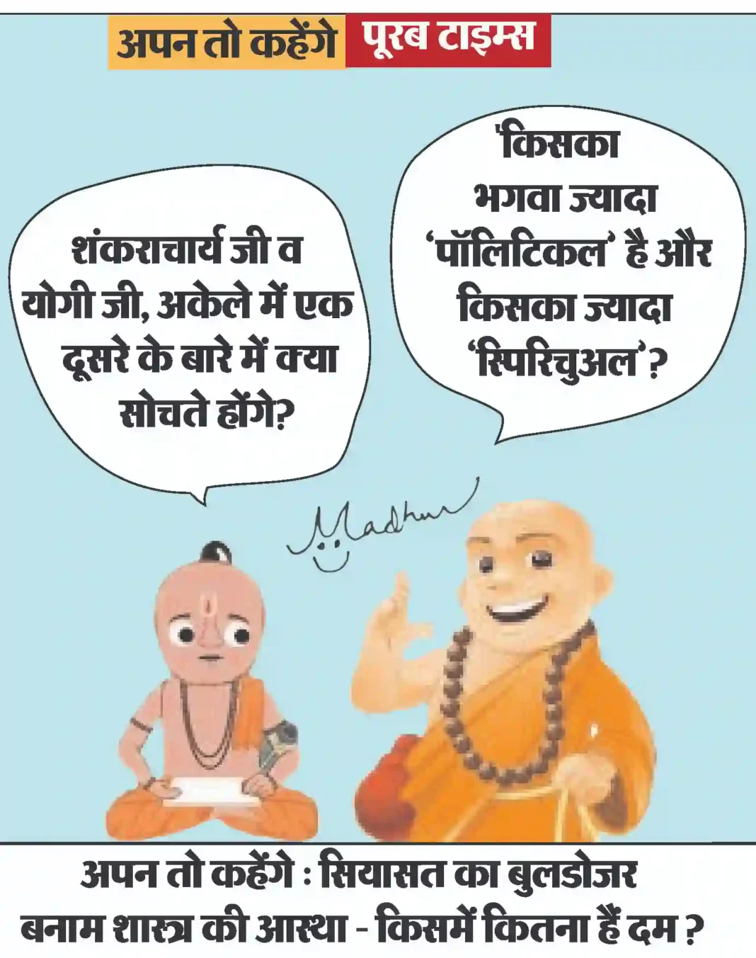 आज का कार्टून Less than 1 min.Read आज का कार्टून : सियासत का बुलडोजर बनाम शास्त्र की आस्था – किसमें कितना हैं दम ? By Poorab Times February 24, 2026 Share FacebookTwitterPinterestWhatsApp More Topics महिला जगत मिक्स वेज पराठा बनाते वक्त फट जाता है? तो ये ट्रिक आपके काम आएगी 0 भरवा पराठा का नाम सुनते ही सब कुछ भूल... छत्तीसगढ़ चौदहवीं अखिल भारतीय पुलिस तीरंदाजी प्रतियोगिता का उपमुख्यमंत्री विजय शर्मा ने किया शुभारंभ 0 खेल से सुदृढ़ होता है राष्ट्र निर्माण - उपमुख्यमंत्री... छत्तीसगढ़ राज्यपाल श्री डेका से अखिल भारतीय कुर्मी क्षत्रिय महासभा के प्रदेश अध्यक्ष ने भेंट की 0 रायपुर। राज्यपाल रमेन डेका से आज यहां लोकभवन में... छत्तीसगढ़ मुख्यमंत्री विष्णु देव साय की अध्यक्षता में आज यहाँ विधानसभा परिसर स्थित सभाकक्ष में मंत्री परिषद की बैठक शुरू 0 मुख्यमंत्री विष्णु देव साय की अध्यक्षता में आज... छत्तीसगढ़ मुख्यमंत्री विष्णु देव साय से आज विधानसभा परिसर स्थित उनके कक्ष में वित्त मंत्री ओपी चौधरी ने वित्तीय वर्ष 2026-27 का बजट प्रस्तुत करने... 0 रायपुर। मुख्यमंत्री विष्णु देव साय से आज विधानसभा परिसर... आज का कार्टून आज का कार्टून : सीधा कह दो कि ये हमारे खिलाफ ‘विपक्ष’ की गहरी साजिश है और जांच की मांग करो। 0 महिला जगत बाजार के प्रोडक्ट से रहे दूर,इन आसान घरेलू नुस्खों से बढ़ाये चेहरे की रौनक 0 खूबसूरत दिखना किसे नहीं पसंद और ग्लोइंग चेहरा लोगों... वनस्पति जड़ी बूटी देसी नुस्खे लेमन ग्रास एक औषधीय गुणों से भरपूर घास है, जिससे कई बीमारियों से मिलेगा राहत 0 सदियों से उपचार के लिए आयुर्वेद में औषधीय पौधों... इसे भी पढ़े आज का कार्टून : सीधा कह दो कि ये हमारे खिलाफ ‘विपक्ष’ की गहरी साजिश है और जांच की मांग करो। आज का कार्टून February 23, 2026 आज का कार्टून : एआई से डरो नहीं , ऐसे ही बहुत से सवालों के जवाब उसके पास भी नहीं हैं . आज का कार्टून February 21, 2026 आज का कार्टून : क्या किसी ने चुनाव आयोग के ‘आचार संहिता’ का डंडा, पक्ष या विपक्ष के किसी बड़े नेता पर चलते देखा... आज का कार्टून February 20, 2026 आज का कार्टून : ओलंपिक में शामिल होगा नया खेल: ‘पार्टी-जंपिंग’, भारतीय नेताओं के गोल्ड मेडल पक्के आज का कार्टून February 20, 2026 आज का कार्टून : ‘त्याग’ सिर्फ चुनाव घोषणापत्रों में होता है, बैंक अकाउंट में तो सिर्फ ‘क्रेडिट’ का मैसेज ही सुहाता है। आज का कार्टून February 18, 2026 आज का कार्टून : ट्रम्प व खोमनेई, एक दूसरे को इतनी ज़ोर ज़ोर से ललकार रहे हैं कि देखने वाले , बाकी विश्व का... आज का कार्टून February 17, 2026 आज का कार्टून : ज़ेन–ज़ी वो पीढ़ी है जो ‘पुराना बॉयफ्रेंड’ छोड़ तो देती है, पर फिर ‘पुरानी यादों’ के चक्कर में पुराने खानदान... आज का कार्टून February 16, 2026 आज का कार्टून : केवल निमंत्रण से बात नहीं बनेगी. दोस्ती करने के लिए बांग्लादेश को और कोश