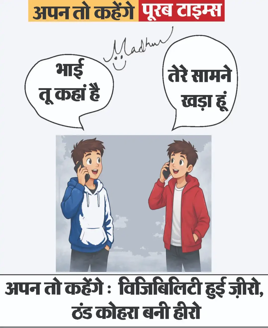 आज का कार्टून :विजिबिलिटी हुई ज़ीरो, ठंड कोहरा बनी हीरो