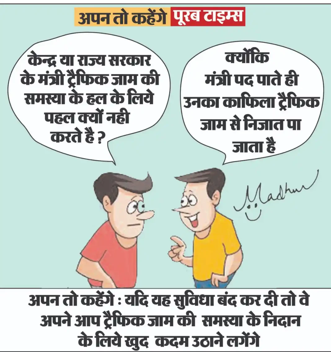 आज का कार्टून : यदि यह सुविधा बंद कर दी तो वे अपने आप ट्रैफिक जाम की समस्या के निदान के लिये खुद कदम उठाने लगेंगे