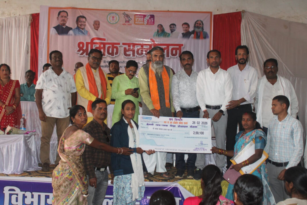छत्तीसगढ़ शासन श्रम विभाग के निर्देशानुसार श्रमिक सम्मेलन-2026 का आयोजन उत्तर बस्तर कांकेर जिले के सामुदायिक भवन अंतागढ़ में किया गया। कार्यक्रम में लोकसभा क्षेत्र कांकेर के सांसद भोजराज नाग मुख्य अतिथि के रूप में उपस्थित रहे तथा कार्यक्रम की अध्यक्षता नगर पंचायत अंतागढ़ के अध्यक्ष राधेलाल नाग द्वारा की गई। इस अवसर पर छत्तीसगढ़ भवन एवं अन्य सन्निर्माण कर्मकार कल्याण मंडल एवं छत्तीसगढ़ असंगठित कर्मकार राज्य सामाजिक सुरक्षा मंडल की विभिन्न जनकल्याणकारी योजनाओं के अंतर्गत जिले के श्रमिकों और उनके परिवार के सदस्यों को डायरेक्ट बेनिफिट ट्रांसफर (डीबीटी) के माध्यम से राशि प्रदान कर लाभान्वित किया गया।