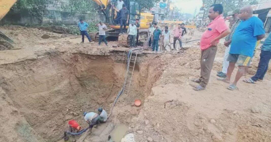 भाठागांव चौक के पास राइर्जिंग मेन पाईप लाईन लीकेज की मरम्मत शुरू
