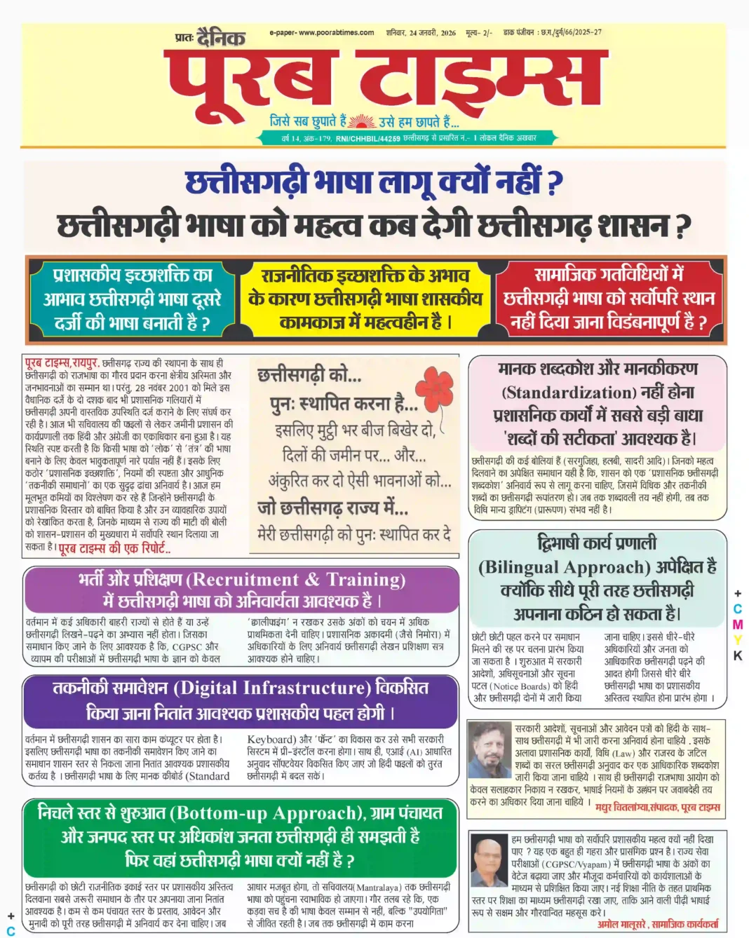 –राजनीतिक इच्छाशक्ति के अभाव के कारण छत्तीसगढ़ी भाषा शासकीय कामकाज में महत्वहीन है
