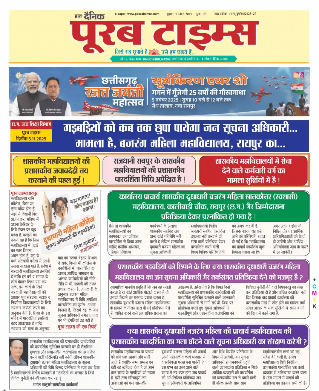 गड़बडिय़ों को कब तक छुपा पायेगा जन सूचना अधिकारी… मामला है, बजरंग महिला महाविद्यालय, रायपुर का..