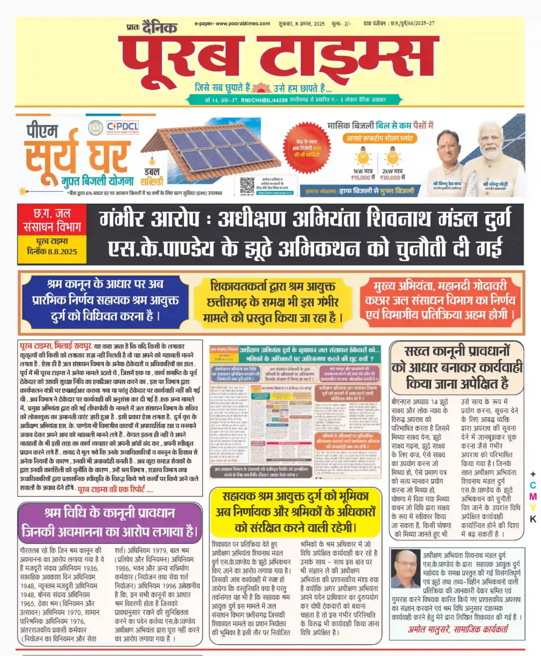 पूरब टाइम्स , भिलाई रायपुर . यह कहा जाता है कि यदि किसी के लगातार कुकृत्यों की किसी को लगातार सज़ा नहीं मिलती है तो वह अपने को महाबली मानने लगता है . ऐसा ही है जल संसाधन विभाग के अनेक ठेकेदारों व अधिकारियों का हाल . पूर्व में भी पूरब टाइम्स ने अनेक मामले उठाये थे , जिसमें एक था , कार्य समाप्ति के पूर्व ठेकेदार को उसकी सुरक्षा निधि का एफडीआर वापस करने का , इस पर विभाग द्वारा कार्यपालन यंत्री पर एफआईआर कराया गया था परंतु ठेकेदार पर कार्यवाही नहीं की गई थी . अब विभाग ने ठेकेदार पर कार्यवाही की अनुशंसा कर दी गई है .एक अन्य मामले में, प्रमुख अभियंता द्वारा की गई लीपापोती के मामले में जल संसाधन विभाग के सचिव को लोकायुक्त का ज़मानती वारंट ज़ारी हुआ है . इसी प्रकार ऐसा लगता है, दुर्ग वृत्त के अधीक्षण अभियंता एस. के. पाण्डेय भी विभागीय कारयों में अपारदर्शिता रख व मनमाने जवाब देकर अपने आप को महाबली मानने लगे हैं . केवल इतना ही नहीं वे अपने मातहतों के भी इसी तरह का कार्य व्यवहार को अपनी आंखें बंद कर , अपनी स्वीकृत प्रदान करने लगे हैं . शायद वे भूल गये कि उनके उच्चाधिकारियों व कानून के हिसाब से अनेक नियमों के कारण , उनकी भी जवाबदेही बनती है . अब कुछ समाज सेवकों के द्वारा उनकी कार्यशैली को चुनौति के कारण , उन्हें श्रम विभाग , राजस्व विभाग तथा उच्चाधिकारियों द्वारा प्रशासनिक स्वीकृति के विरुद्ध किये गये कार्यों पर किये जाने वाले सवालों के जवाब देने होंगे . पूरब टाइम्स की एक रिपोर्ट ….