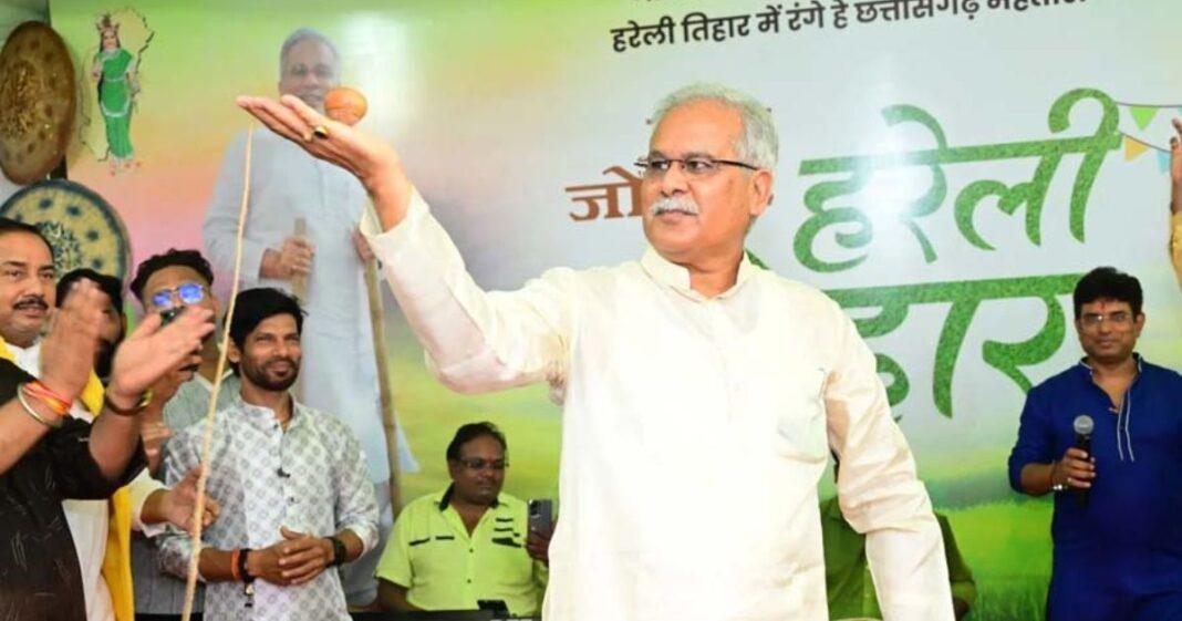 भूपेश बघेल ने पारंपरिक धोती-कुर्ता पहनकर खुद गेड़ी चढ़ी, बच्चों के साथ भौंरा खेला और किसानों को कृषि उपकरण बांटे। उन्होंने कहा,
