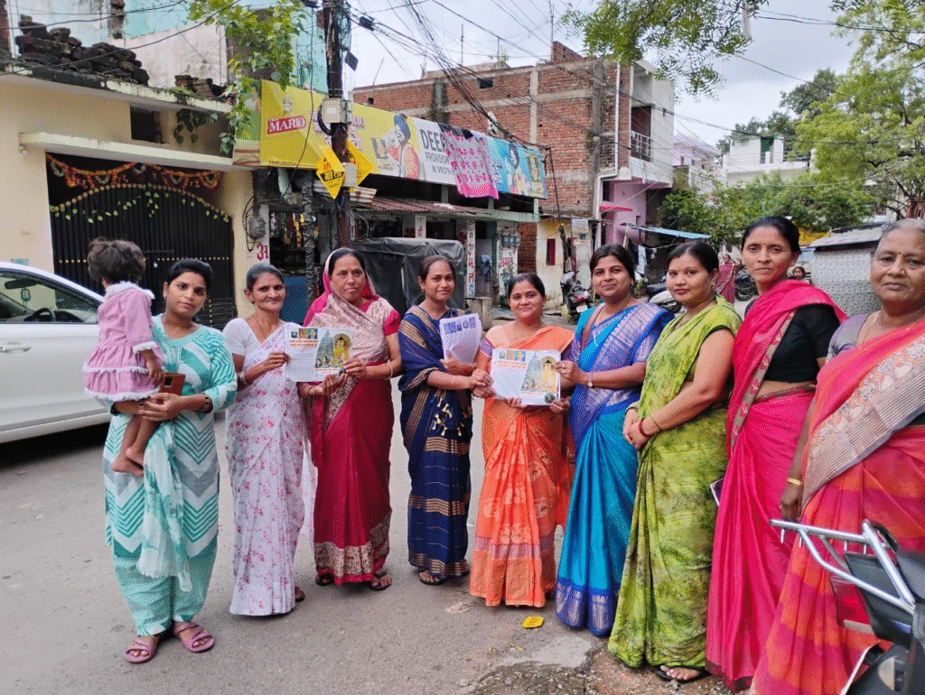 संघ की नवनिर्वाचित सचिव भविंद्रा भालाधारे और संयुक्त सचिव रोहिणी बोरकर के नेतृत्व में संघ की वरिष्ठ सदस्यों – इंद्रा आई बोरकर, अनीता वंजारीताई, रीमा गणवीरताई, लता खोब्रागड़े , रविकांता वान्द्रे , दीपमाला वान्द्रे, साधना गायकवाड़ , पापीला मेश्राम और राखी सावर – ने राजेंद्र नगर की गलियों में घूम-घूम कर नागरिकों से रैली में शामिल होने की अपील की।