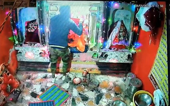 सुबह जब श्रद्धालु रोजानना की तरह पूजा-अर्चना के लिए मंदिर पहुंचे, तो टूटा हुआ ताला देखकर हड़कंप मच गया. तत्काल पुलिस को सूचना दी गई. मौके पर पहुंची पुलिस ने जांच शुरू की और मंदिर में लगे सीसीटीवी कैमरों की फुटेज खंगाली. सीसीटीवी फुटेज में एक युवक साफ तौर पर चोरी करता हुआ दिखाई दे रहा है. युवक ने नीले रंग की हुडी पहन रखी है और सिर पर कैप लगाए हुए है. वीडियो में देखा जा सकता है कि युवक मंदिर में प्रवेश करने के बाद एक-एक कर सभी मूर्तियों की तलाशी लेता है. इसके बाद वह मूर्तियों पर ढके गर्म कपड़ों को हटाता है, फिर एक मूर्ति से जेवर चुरा लेता है. सबसे चौंकाने वाला दृश्य तब सामने आता है, जब चोरी करने के बाद युवक मंदिर से निकलने लगता है. जाते समय वह दो बार भगवान के सामने हाथ जोड़ता है, मानो प्रार्थना या माफी मांग रहा हो.
